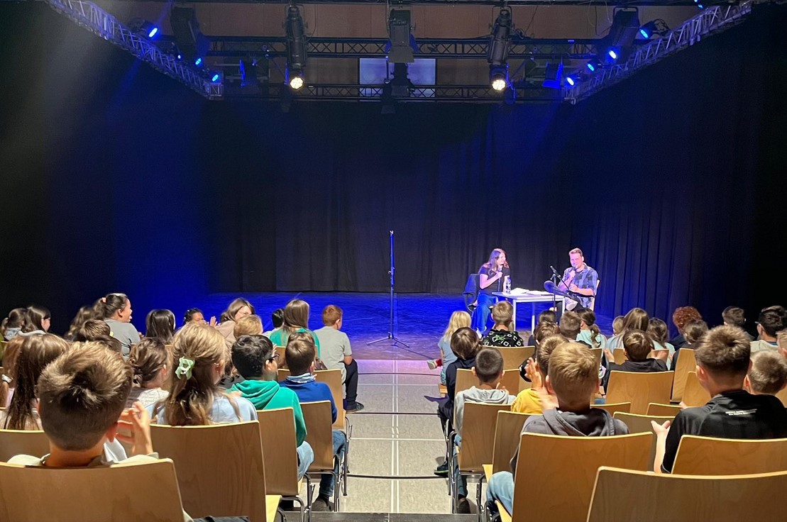 Nach den Workshops, in denen unsere Schüler:innen ihrer Kreativität freien Lauf lassen durften, präsentierten die beiden Slamer:innen Elena und Lukas vom Slamkollektiv Graz ihre selbstgeschriebenen Texte mit viel Gefühl, Witz und Kreativität auf der Bühne.