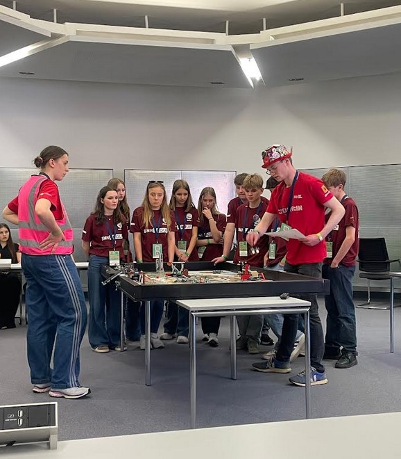 Das Team stellte sich vor Ort den Herausforderungen in der Live-Challenge, beim Robotgame und bei der Forschungspräsentation.